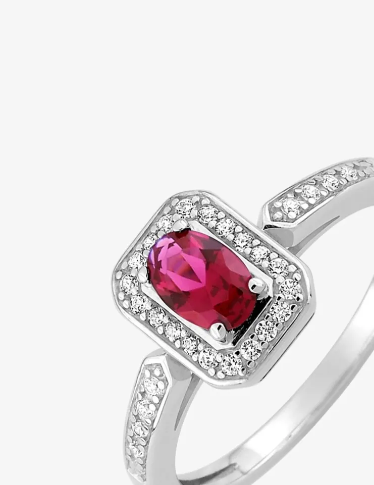 Bague en argent 925 ‰ rhodié, entièrement pavée d’oxydes de zirconium blancs étincelants, offrant une brillance incomparable et distinctive. En son centre se distingue un oxyde de zirconium rose de 6 mm de hauteur, apportant une touche de couleur raffinée au bijou. Avec un poids total de 2,61 g, cette bague allie originalité et confort pour un port quotidien agréable. Choisissez ce bijou vibrant et coloré pour ajouter une touche de caractère unique à votre style.