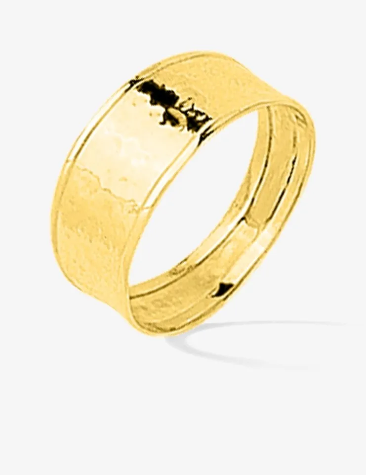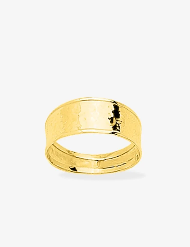 Adoptez cette bague en or jaune 375‰ (9 carats). Cette bague est un anneau tout en or d’une largeur de 6 mm. Son poids d’or moyen est de 0,85 g pour une taille 54.