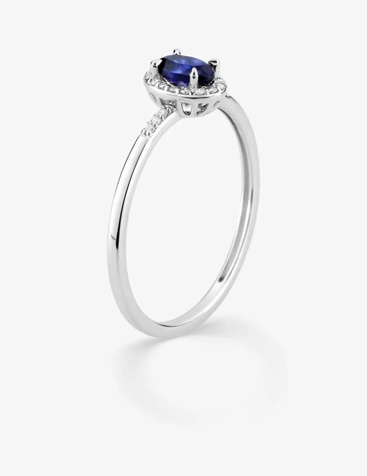 Bague en or blanc 375 ‰, saphir et diamants synthétiques 0,07 ct SO OR
