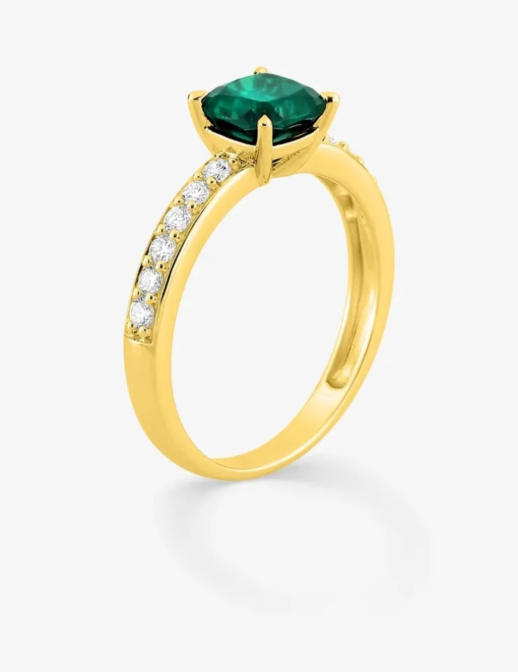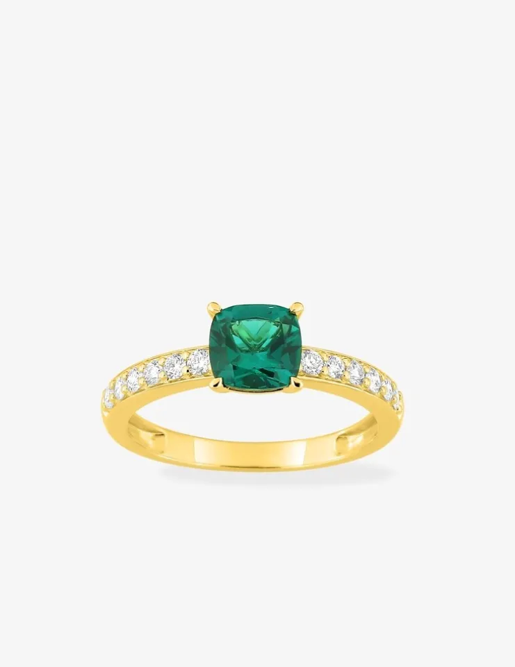 Bague en or jaune 375 ‰, émeraude et diamants synthétiques 0,26 ct SO OR