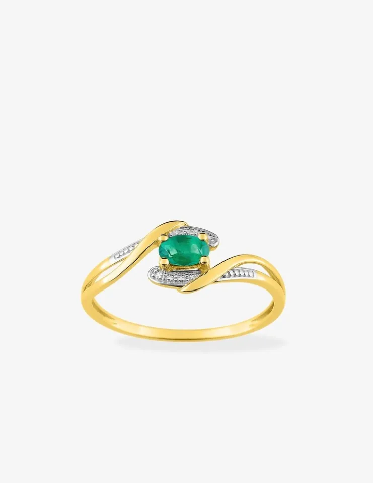 Bague en or jaune 375 ‰, émeraude et rhodium SO OR