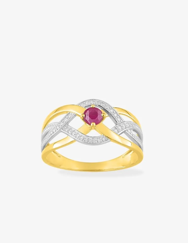 Bague en or jaune 750 ‰, avec rubis et rhodium SO OR