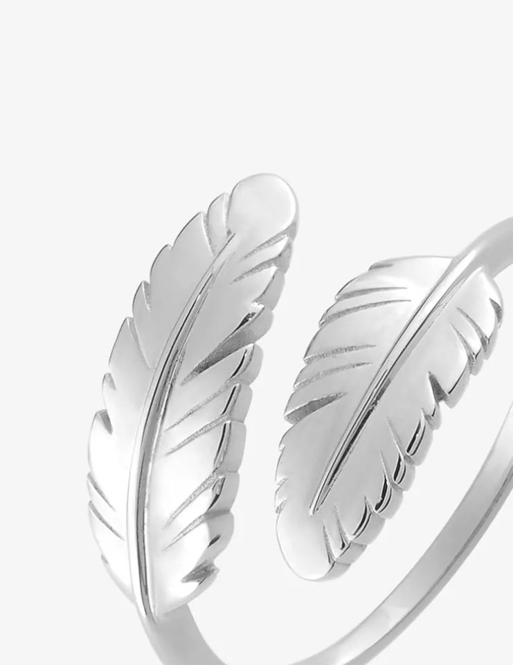 Bague fantaisie argent rhodié 925 ‰ plume SO OR