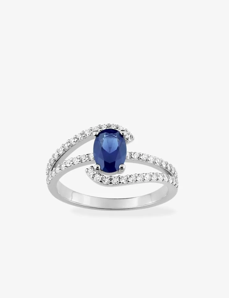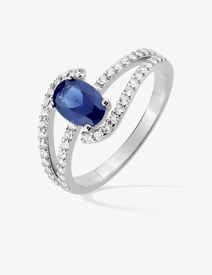 Bague fantaisie en argent 925 ‰ rhodié, ornée d’un oxyde de zirconium bleu principal entouré d’oxydes blancs, offrant éclat et couleur à ce bijou. Chaque oxyde est délicatement serti de quatre griffes pour une tenue optimale. Avec un poids total de 2,37 g, cette bague allie élégance et confort, parfaite pour un port quotidien.