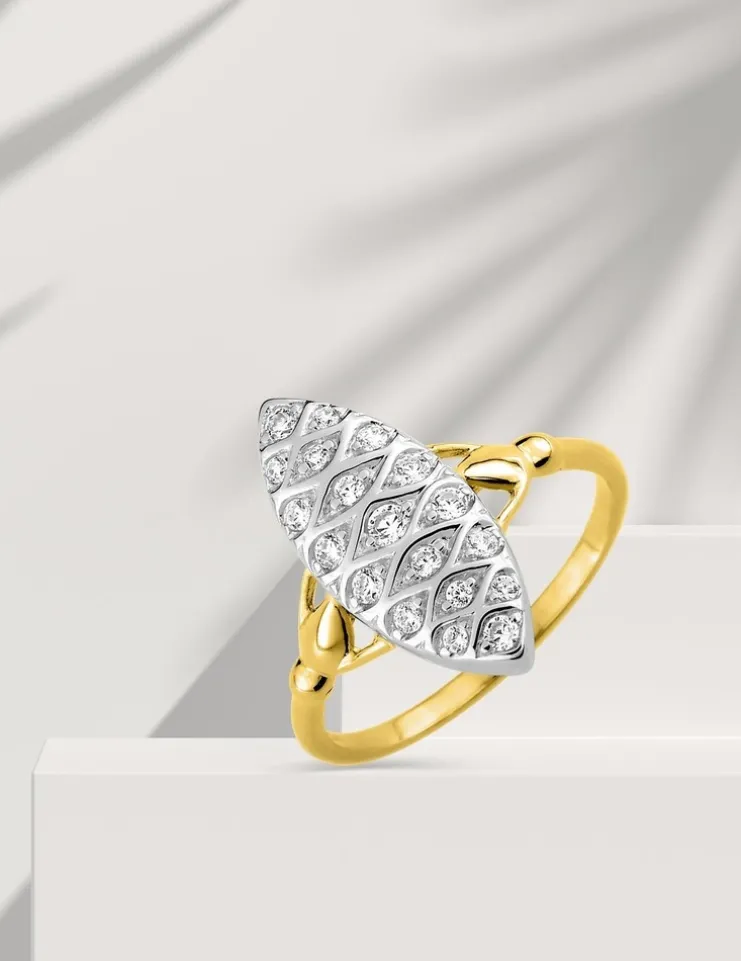 Bague fantaisie marquise bicolore or 375 ‰ oxyde de zirconium SO OR