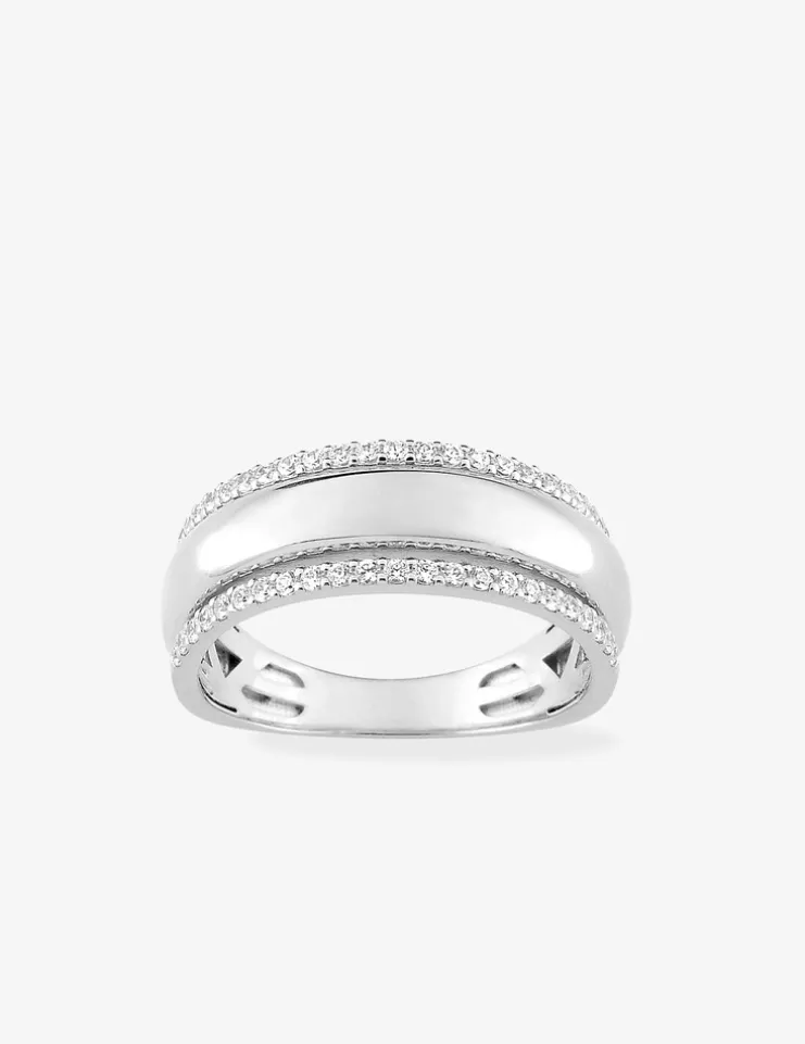 Bague fantaisie or blanc 375‰ et oxyde de zirconium SO OR