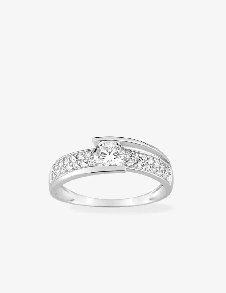 Bague fantaisie solitaire accompagné or blanc 750 ‰ et pavage d'oxydes de zirconium SO OR