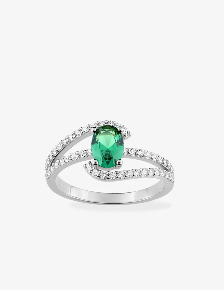 Bague monture ondulée argent 925‰ rhodié et oxyde de zirconium vert SO OR