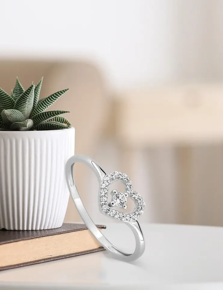 Bague motif cœur or blanc 375 ‰ oxyde de zirconium SO OR