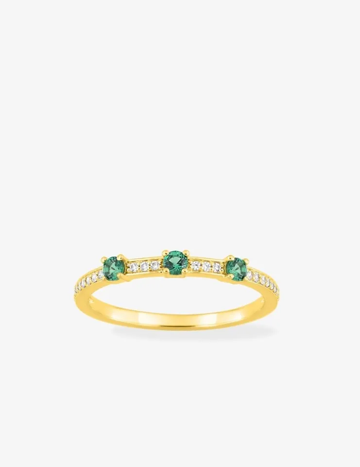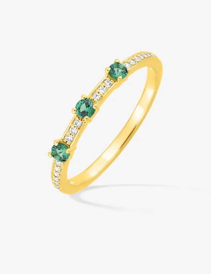 Bague or 750 ‰ jaune avec émeraudes et diamants 0,10 ct SO OR