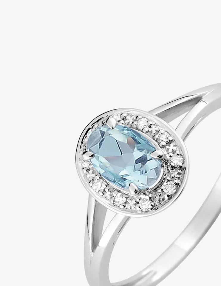 Bague en or blanc 750 ‰ (18 carats) ornée d’une topaze de 6×4,5 mm entourée d’oxydes de zirconium. Avec un poids d’or de 2,00 g pour une taille 54, cette bague est à la fois élégante et significative. La topaze, réputée pour symboliser la clarté et la sagesse, ajoute une touche précieuse et inspirante à ce bijou.