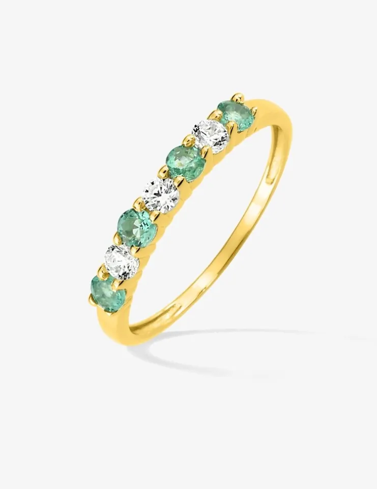 Bague or jaune 375‰, émeraudes, oxydes de zirconium SO OR