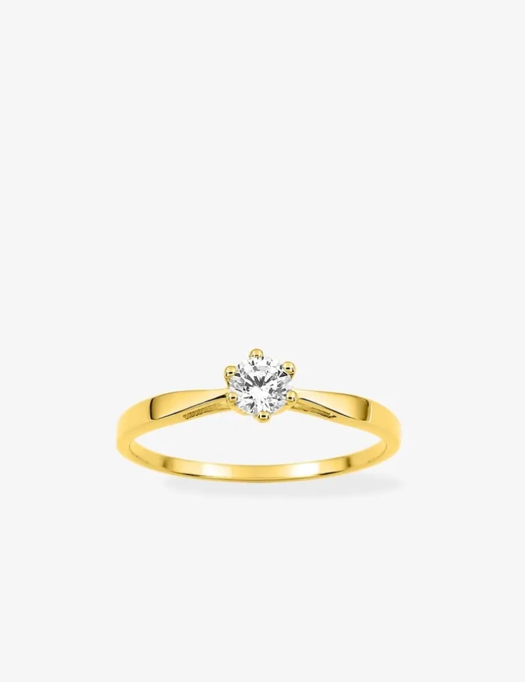 Bague or jaune 375‰ style solitaire et oxyde blanc serti griffes SO OR