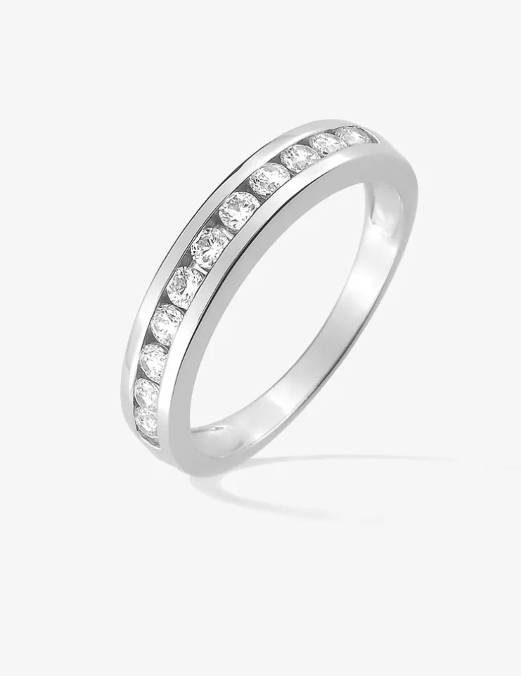 Cette bague classique et intemporelle faite en argent rhodié 925 ‰ est sertie d’oxydes de zirconium de 2 mm de diamètre. Elle a un poids de 1,90 g.
