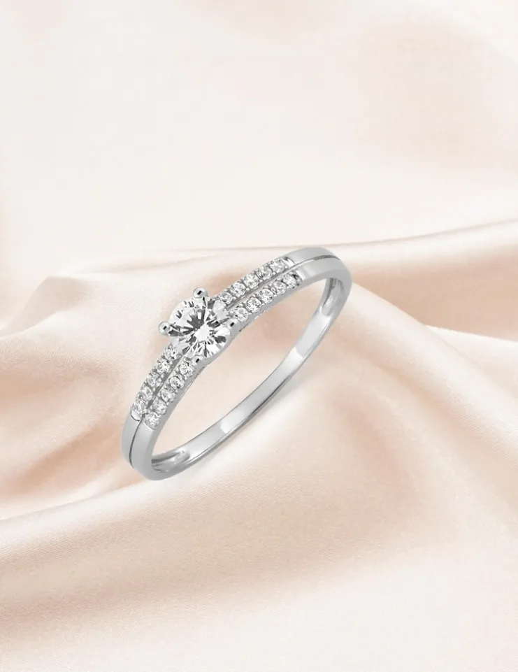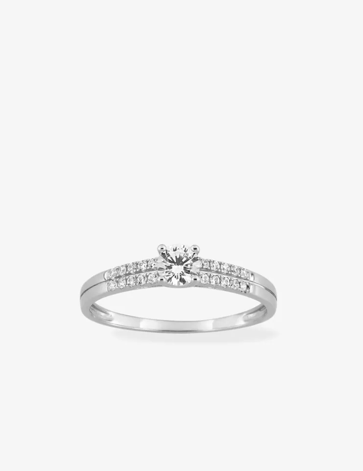 Bague solitaire accompagné or blanc 375 ‰ et oxydes de zirconium SO OR