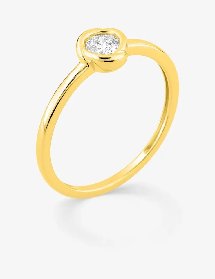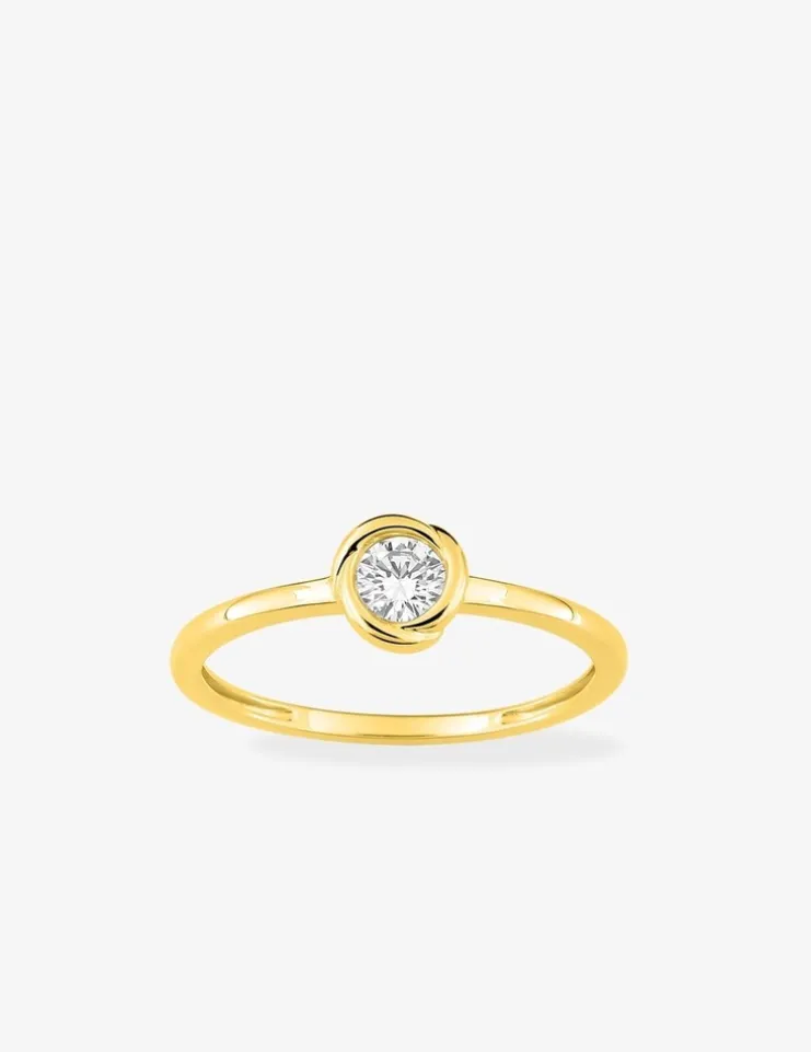 Bague solitaire or 375 ‰ jaune diamant synthétique 0,20 ct serti clos SO OR