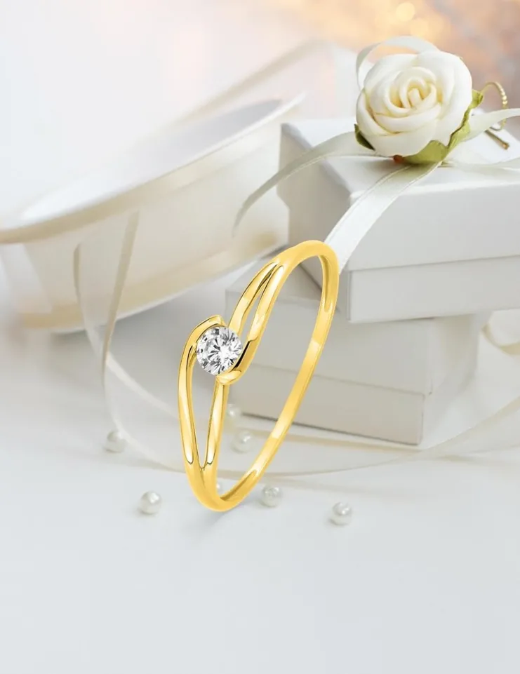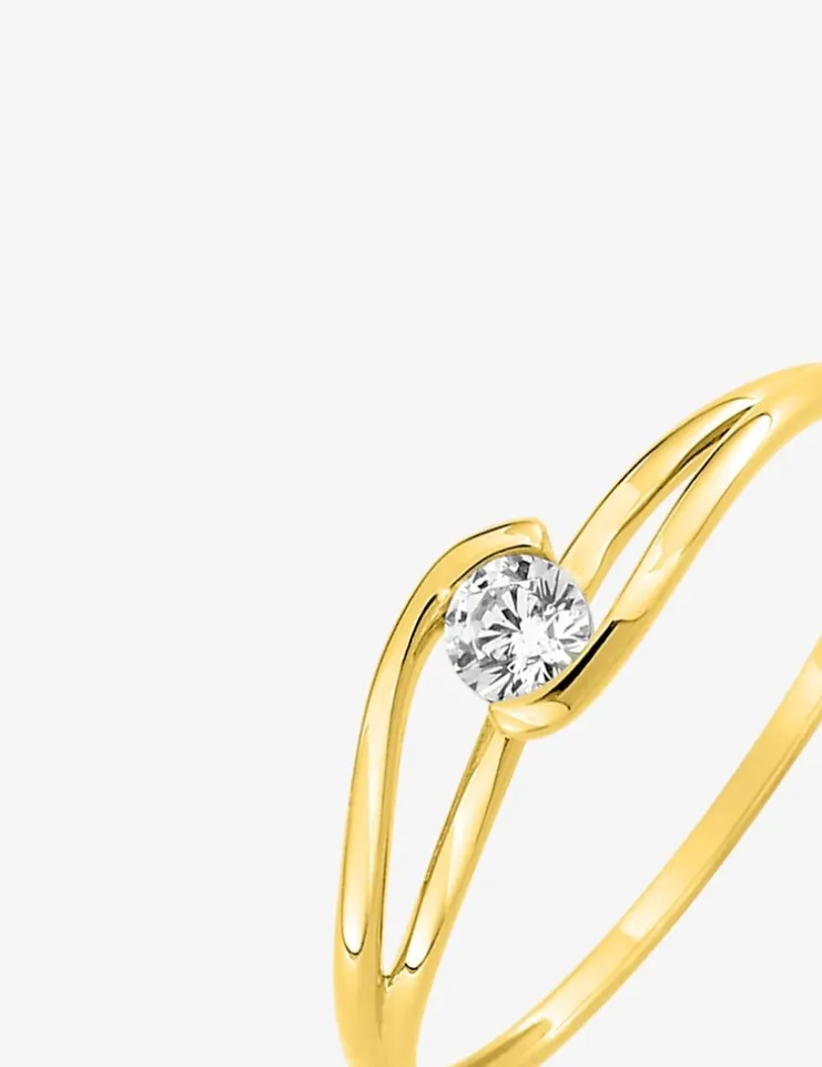 Bague solitaire or jaune 375 ‰ et oxyde de zirconium SO OR