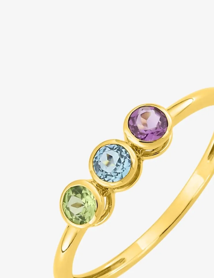 Bague trilogie en or jaune 375 ‰ (9 carats), mettant en valeur une superbe topaze bleue traitée. Chaque pierre est délicatement sertie clos pour une sécurité optimale. Ce bijou aux finitions fines et colorées affiche un poids ultra léger de 0,96 g, offrant un confort exceptionnel au quotidien. Choisissez cet accessoire original pour ajouter une touche éclatante et colorée à vos tenues.