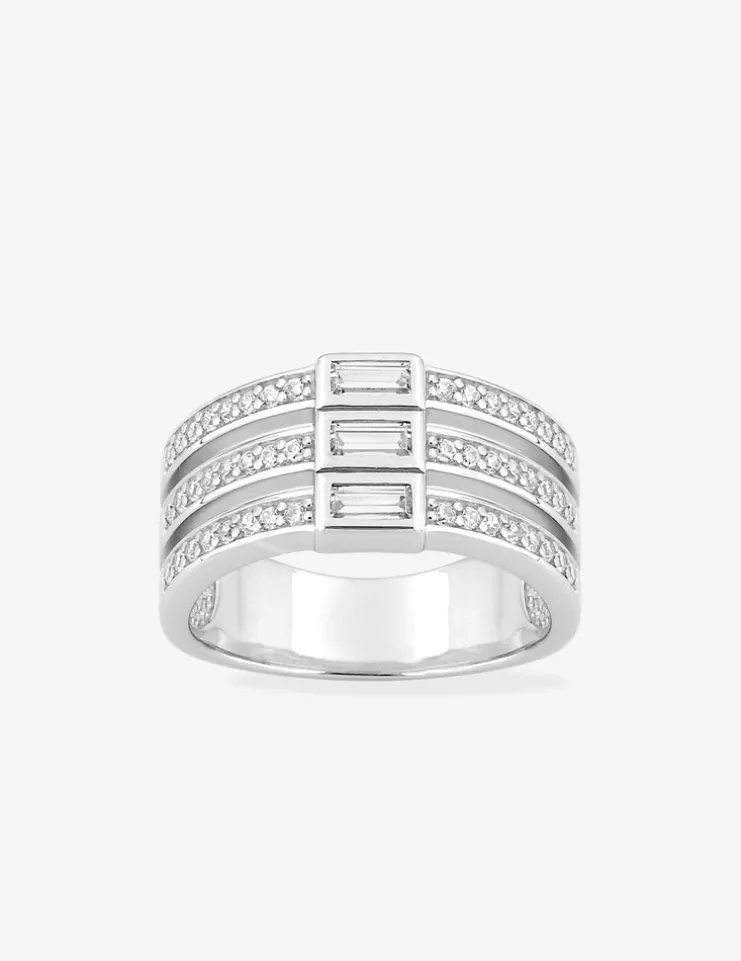 Bague triple anneau et triple rectangle argent 925‰ rhodié et oxydes de zirconium SO OR