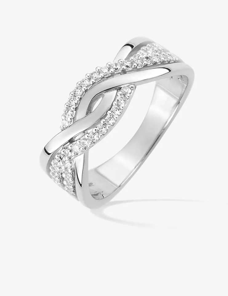 Craquez pour l’élégance de cette bague en argent 925‰ rhodié. Elle se compose de plusieurs vagues qui s’entremêlent, dont deux qui sont serties d’oxydes de zirconium.