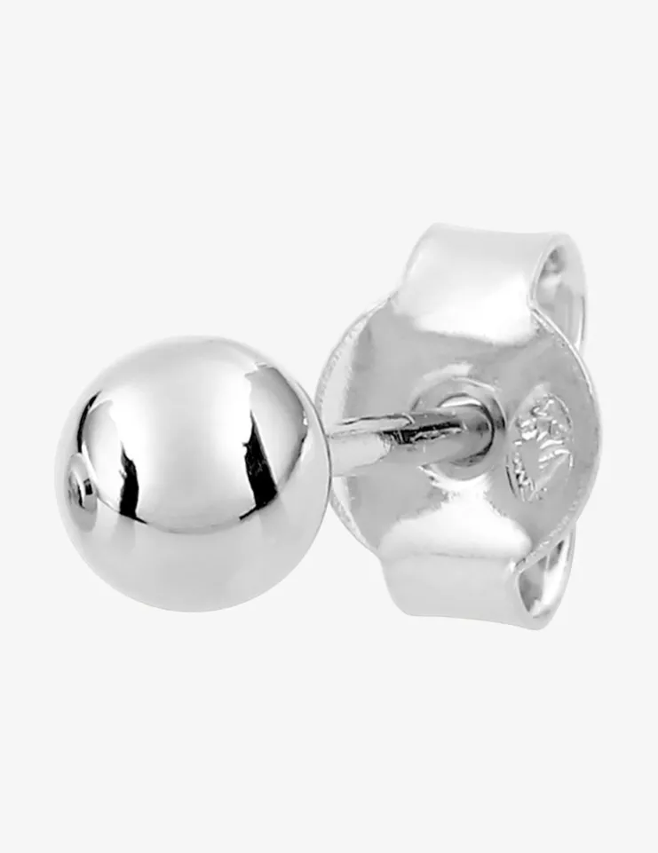 Boucle d'oreille boule à l'unité en argent 925 ‰ rhodié, diamètre 4 mm SO OR
