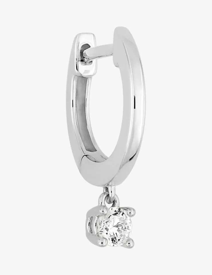 Boucle d'oreille créole à l'unité en argent 925 ‰ rhodié, breloque oxyde de zirconium SO OR