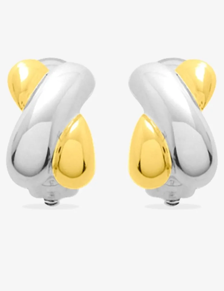Boucles d'oreilles à clip anneaux bicolores croisés plaqué or et rhodium SO OR