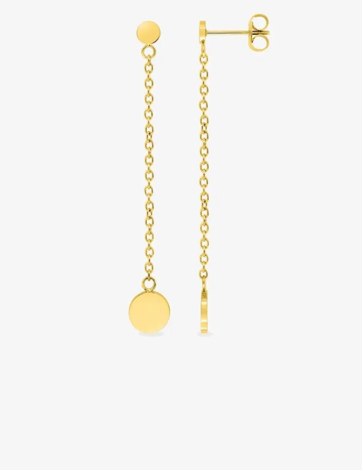 Boucles d'oreilles acier doré avec chaine et jeton pendant SO OR