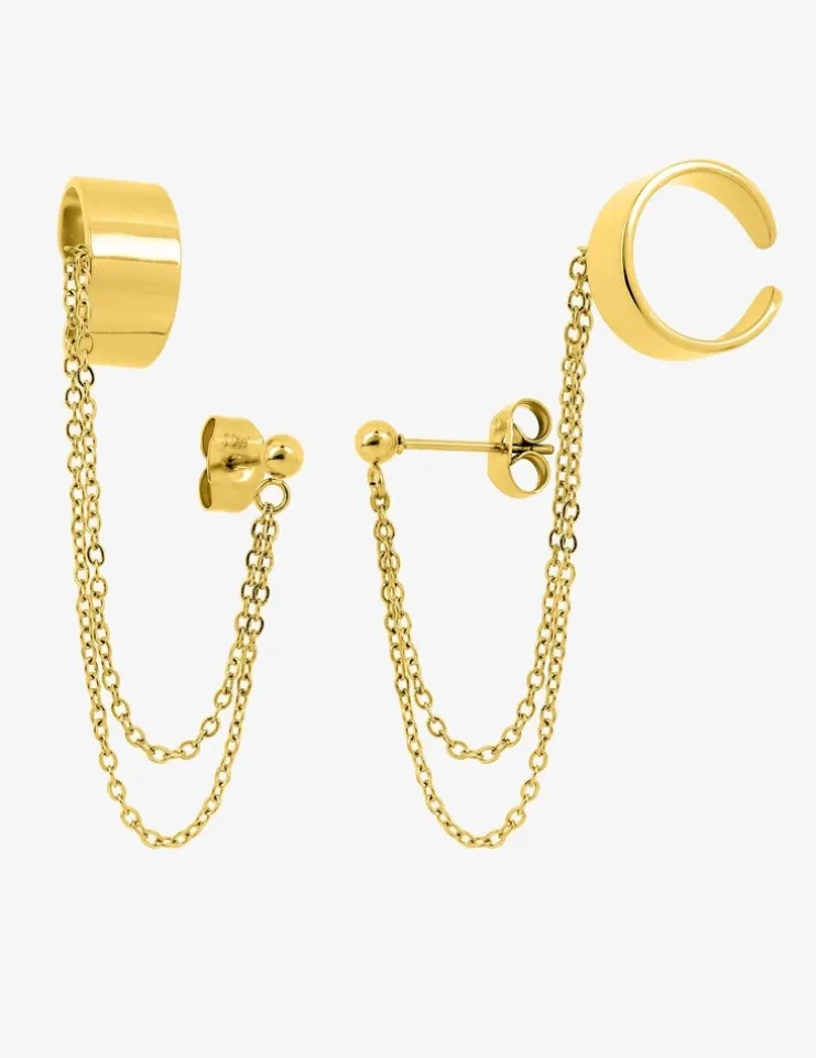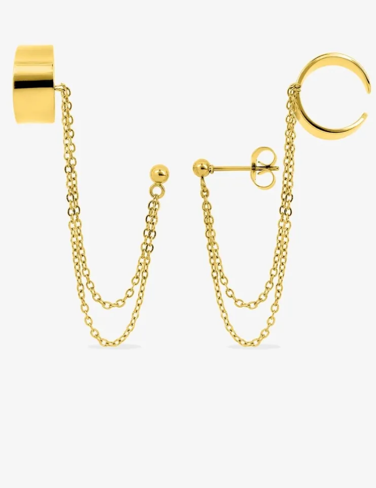 Boucles d'oreilles acier doré double chaine et anneau SO OR