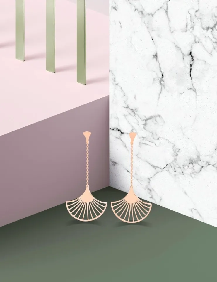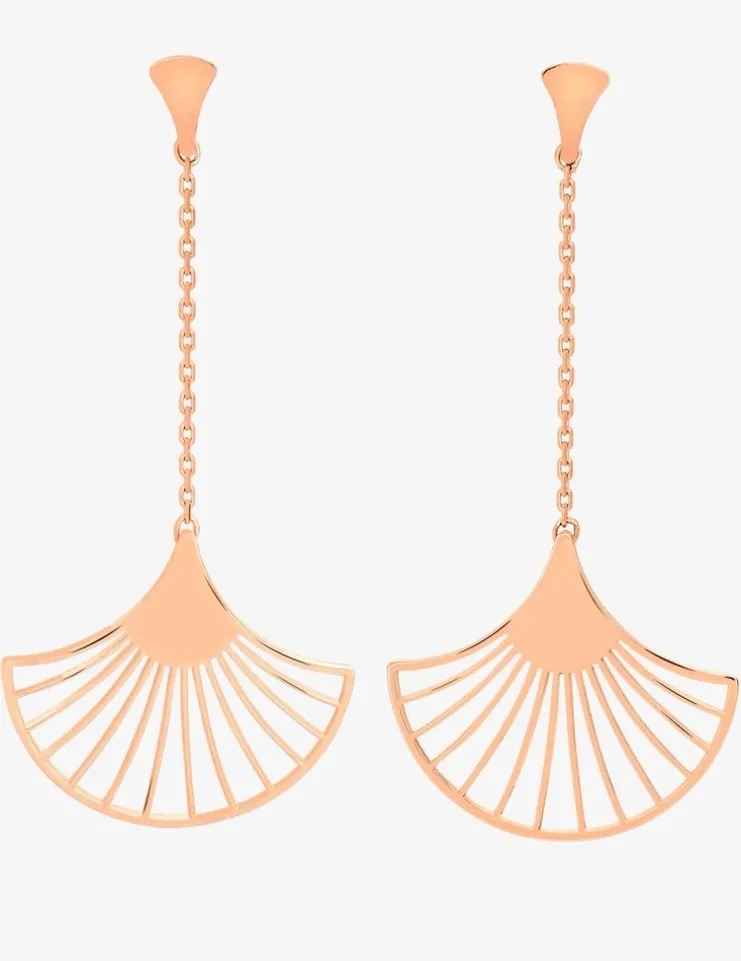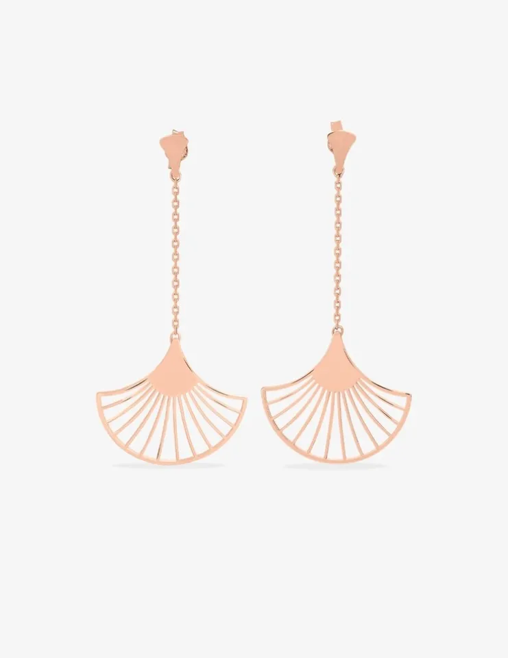Boucles d’oreilles « Oressence » en or rose 750‰, de la collection « Art déco ». Des boucles d’oreilles pendantes élégantes et légères avec un motif emblématique au style Art déco suspendu par une fine chaine. Des boucles d’oreilles ultra-féminines, à l’esprit rétrochic tendance, qui symbolisent tout le luxe et la tradition de la marque Oressence.Le poids d’or moyen de ces boucles d’oreilles est de 1,35 g., et elles ont un système de fermeture avec poussettes belges.