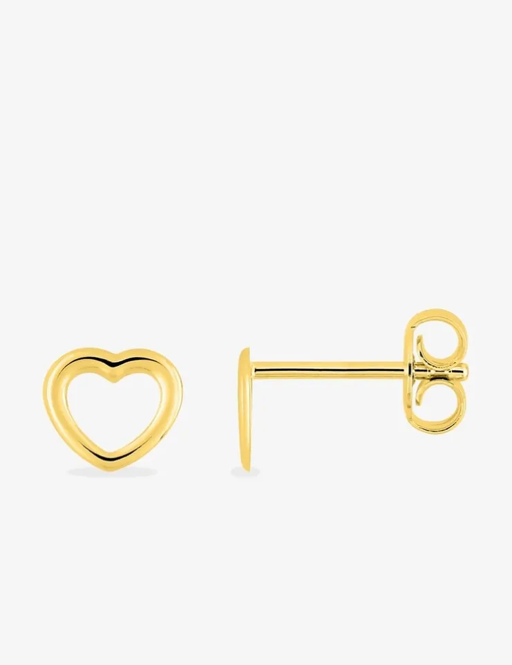 Ces boucles d’oreilles clous au motif de cœur ajouré en plaqué or raviront petites et grandes. Elles mesurent 5 mm de hauteur pour 6 mm de largeur.