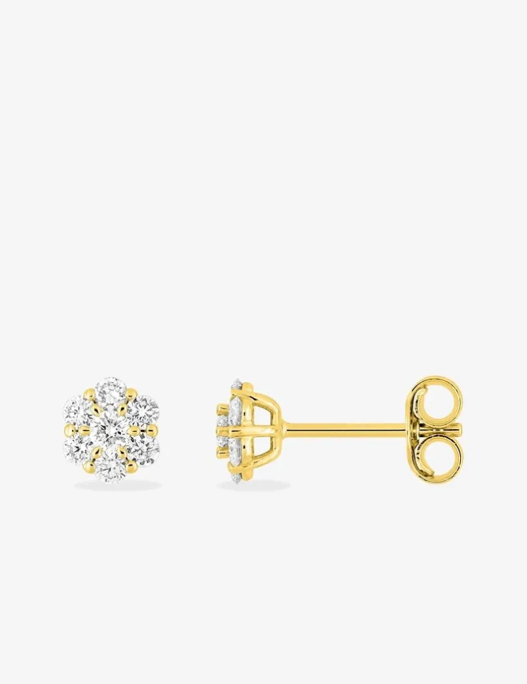 Boucles d'oreilles clous en or jaune 375 ‰, sept diamants synthétiques 0,30 ct SO OR