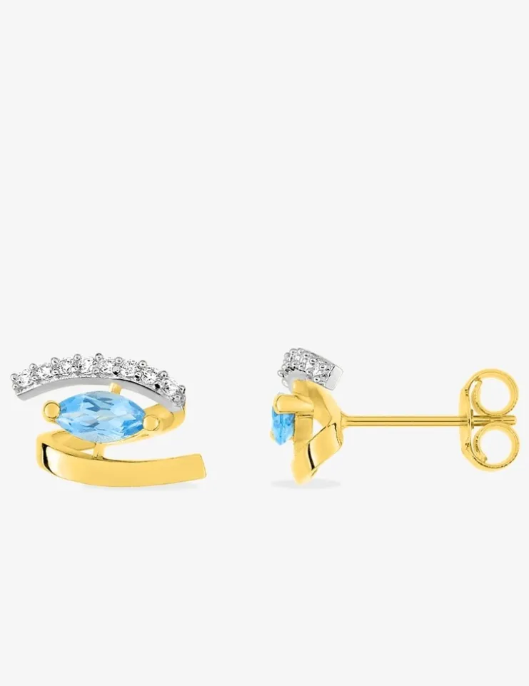 Boucles d'oreilles clous or jaune 375‰ et topaze SO OR
