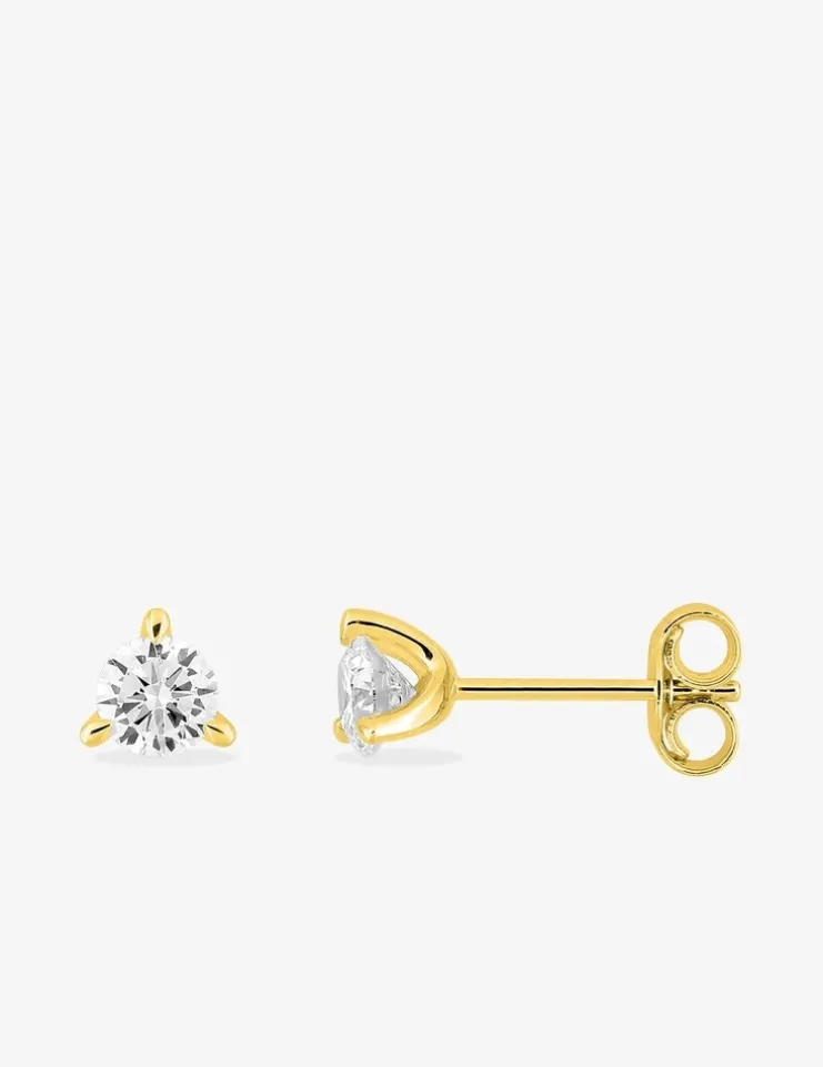 Boucles d’oreilles clous en or jaune 375 ‰ (9 carats) avec des diamants synthétiques totalisant 0,40 ct, délicatement sertis par trois griffes. Pesant seulement 0,45 g, ces boucles sont ultra-légères et agréables à porter au quotidien. Un accessoire incontournable pour celles qui recherchent un mélange parfait de simplicité et d’éclat.