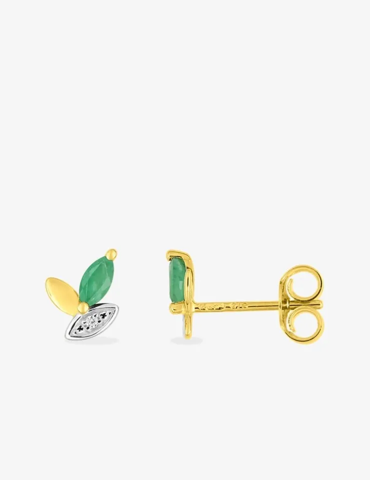 Boucles d'oreilles clous or jaune 375 ‰, rhodium, émeraude et oxyde de zirconium SO OR