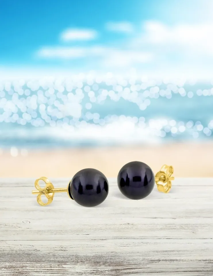Boucles d'oreilles clous or jaune 750 ‰, perle de culture d'eau douce noire 7 mm SO OR