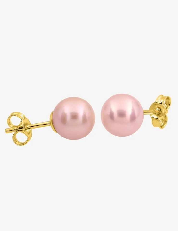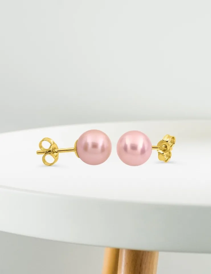 Boucles d'oreilles clous or jaune 750 ‰, perle de culture d'eau douce rose SO OR