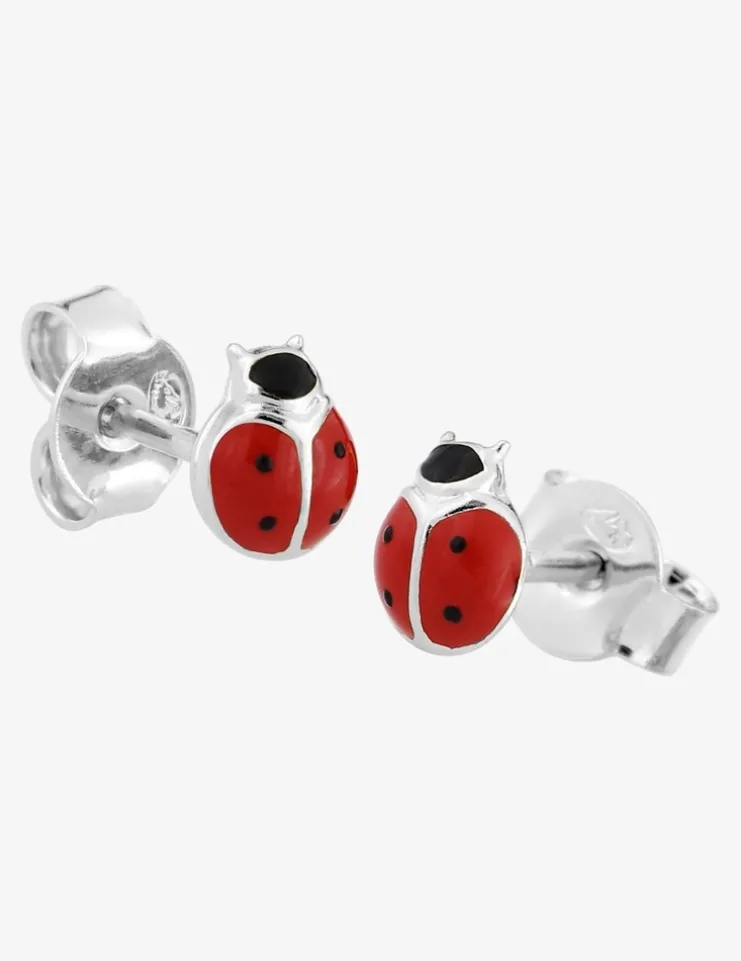 Boucles d'oreilles coccinelles argent 925 ‰ et laque rouge et noir SO OR