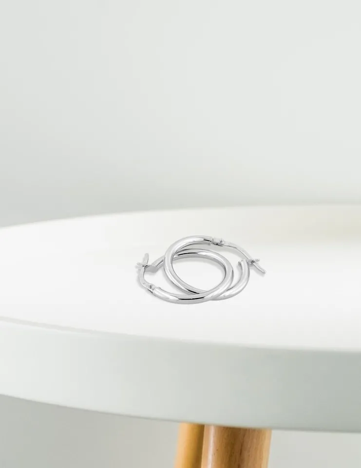 Boucles d'oreilles créoles 15 mm en or blanc 375‰ SO OR