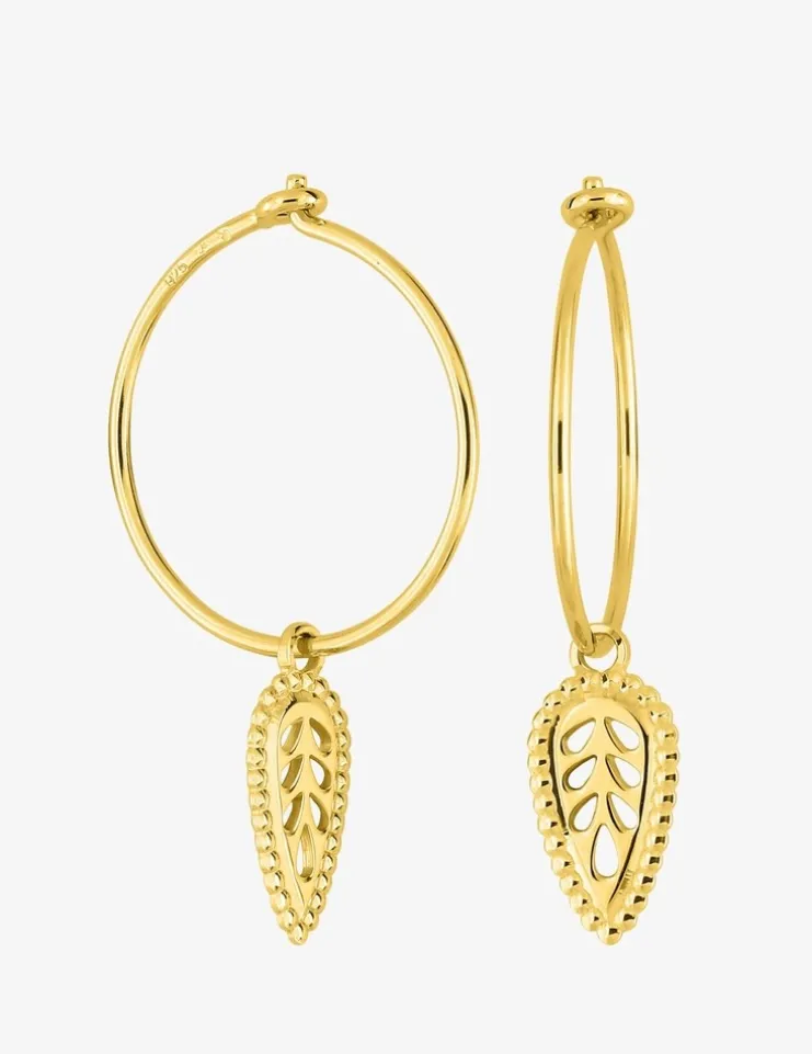Boucles d'oreilles créoles et motif feuille en plaqué or SO OR