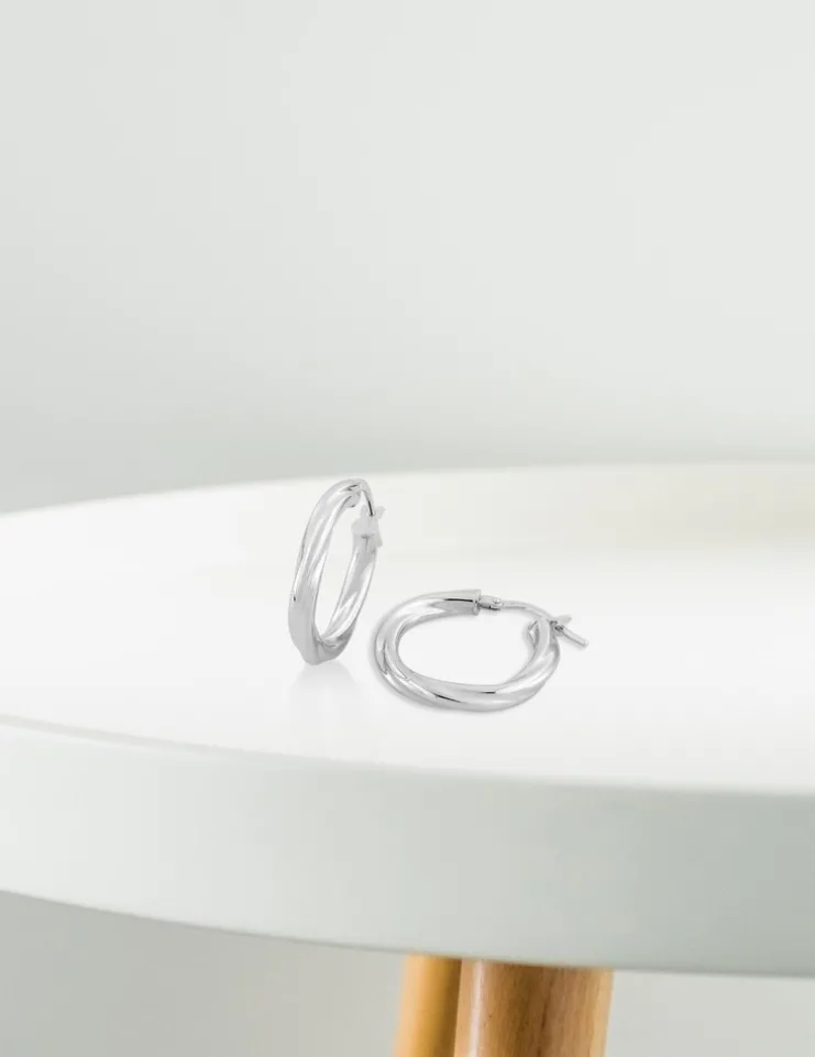 Ces créoles torsadées de 15 mm de diamètre sont en or blanc 375 ‰ (9 carats). Elles se composent d’un fil d’or creux de 3 mm torsadé. Ces boucles d’oreilles se ferment grâce à un système de charnière et ont un poids moyen d’or de 1,35 g.Très féminines, ces ravissantes créoles or blanc se portent facilement et sublimeront votre style en toute simplicité.
