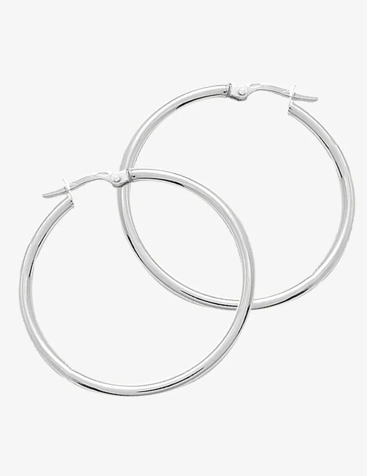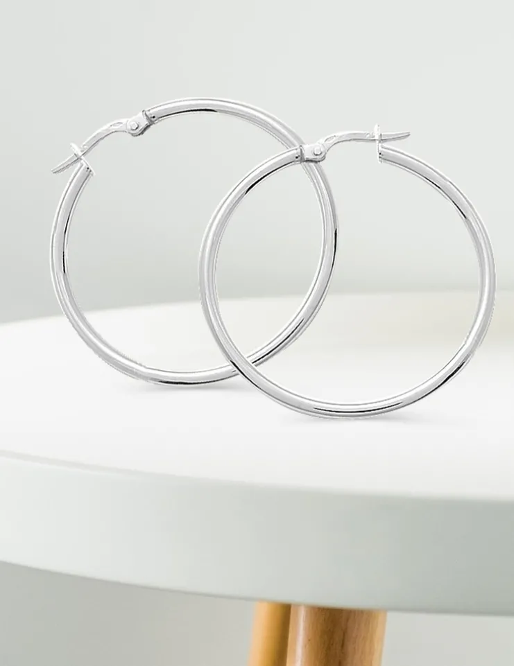 Boucles d'oreilles créoles lisses or blanc 750 ‰ diamètre ext 30 mm SO OR