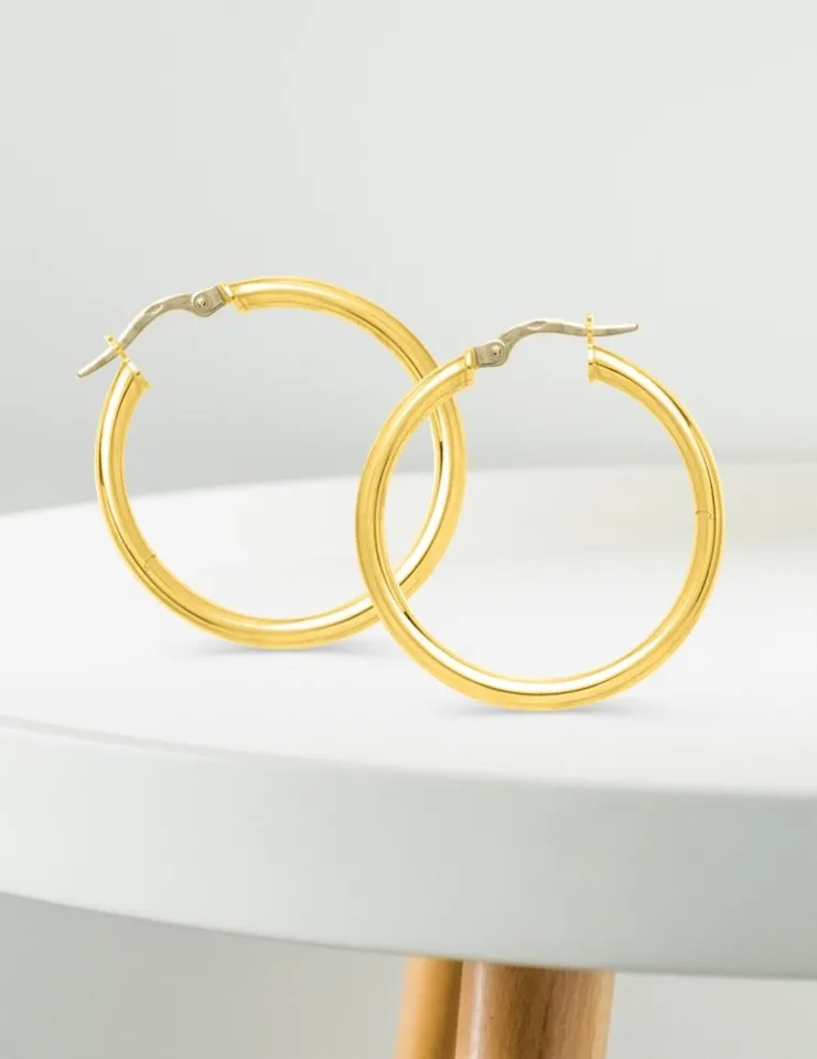 Boucles d'oreilles créoles lisses or jaune 750 ‰ diamètre ext 25 mm SO OR