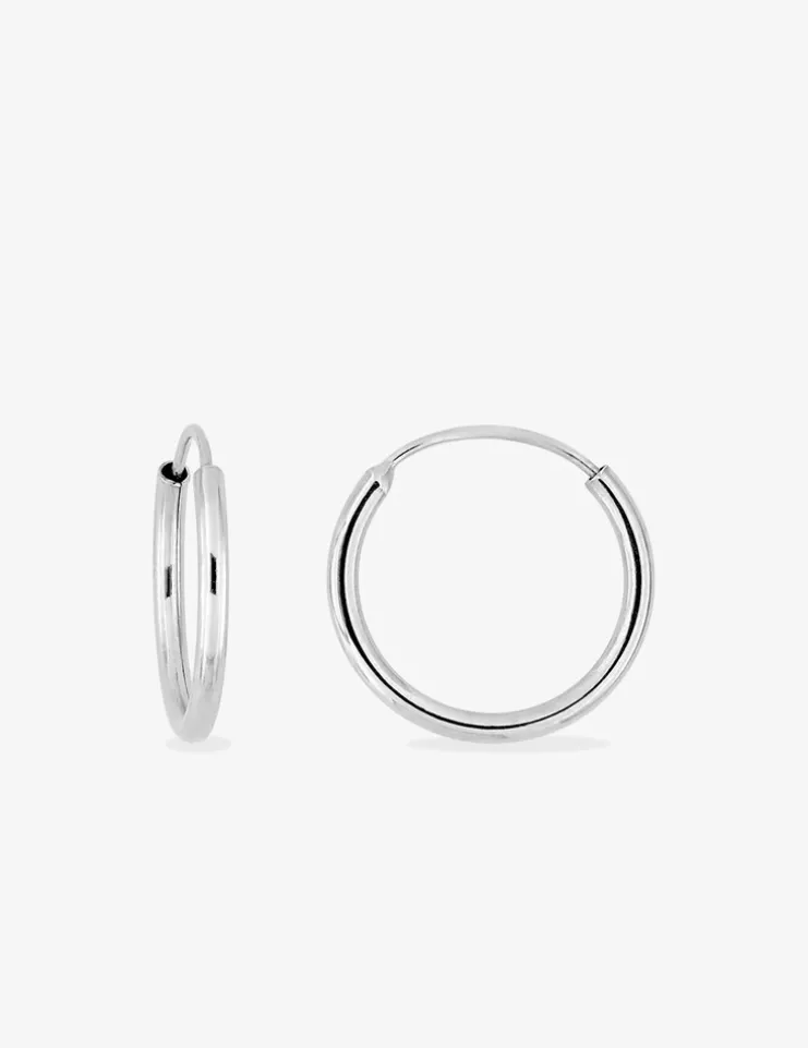 Boucles d’oreilles créoles en or blanc 375 ‰ (9 carats) avec un fil de 1 mm et un diamètre de 10 mm. Le poids d’or moyen est de 0,20 g. Elles se ferment par une tige à insérer dans le tube de la créole.
