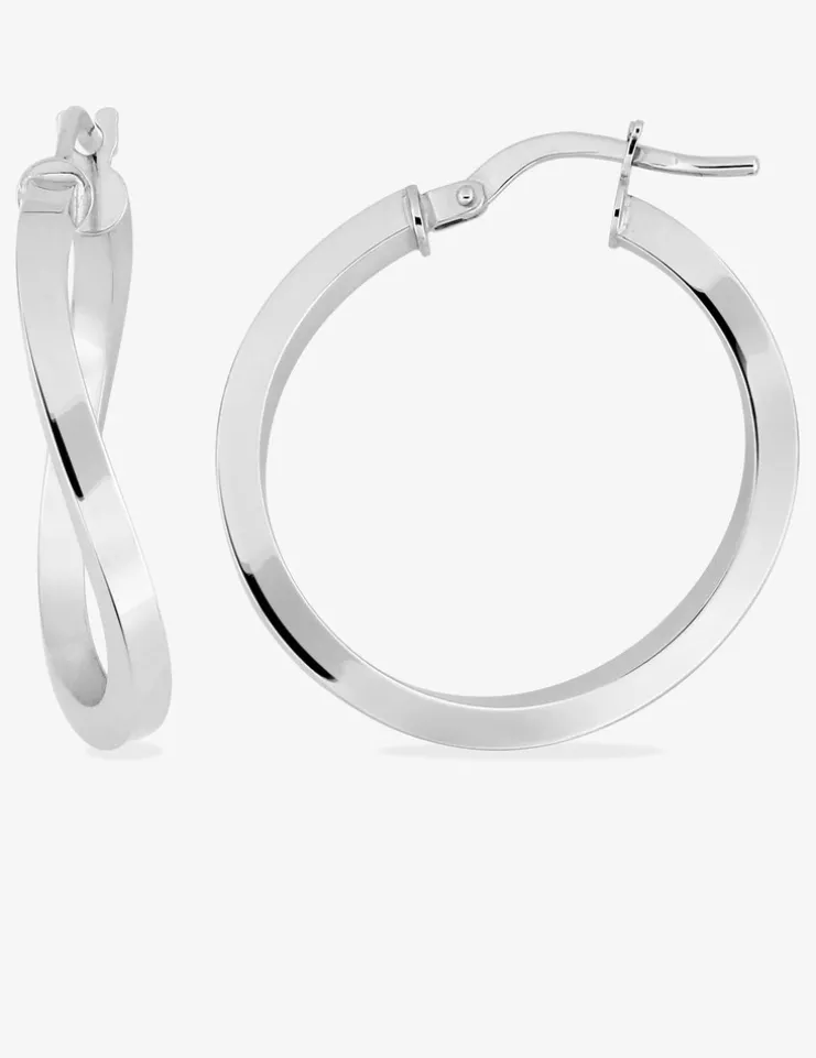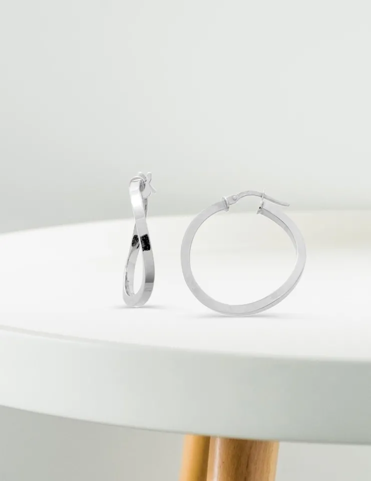 Boucles d’oreilles créoles en or blanc 750 ‰ (18 carats). Créoles fantaisies ondulées, diamètre 18 mm, poids or théorique 1,65 g.