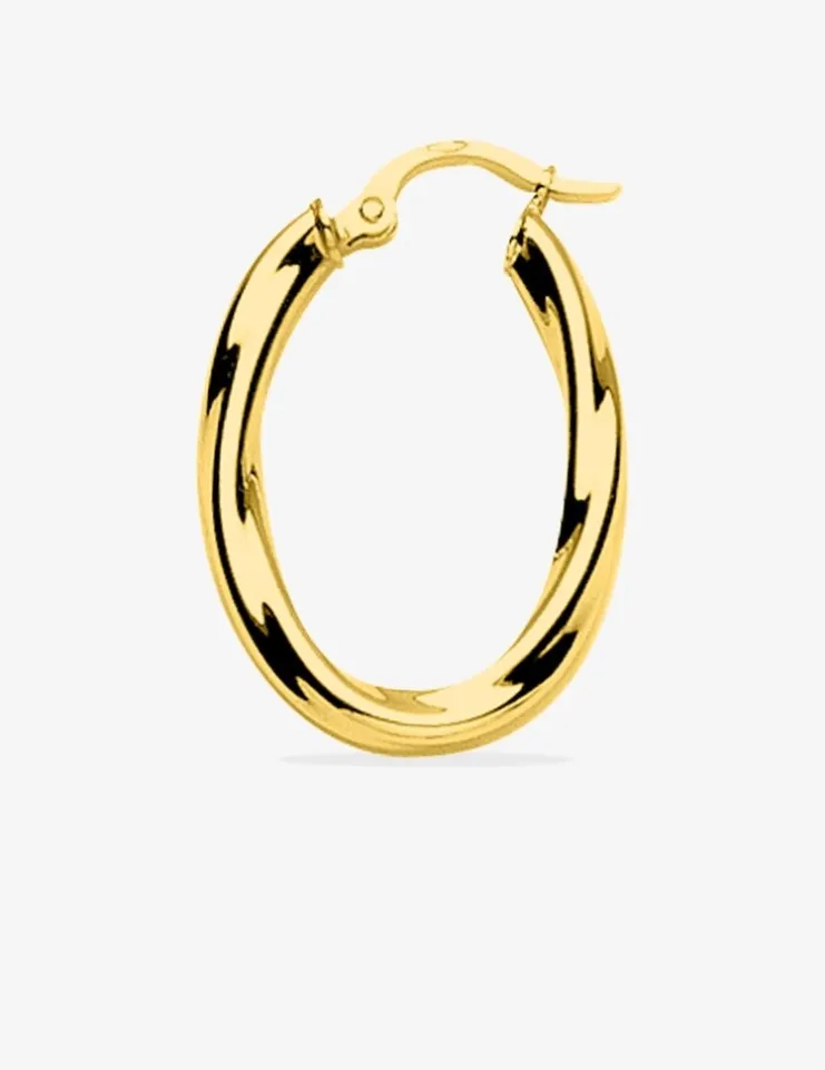 Ces créoles torsadées classiques et incontournables en plaqué or mesurent 20 mm de hauteur, 15 mm de largeur et l’épaisseur du tube est de 3 mm.
