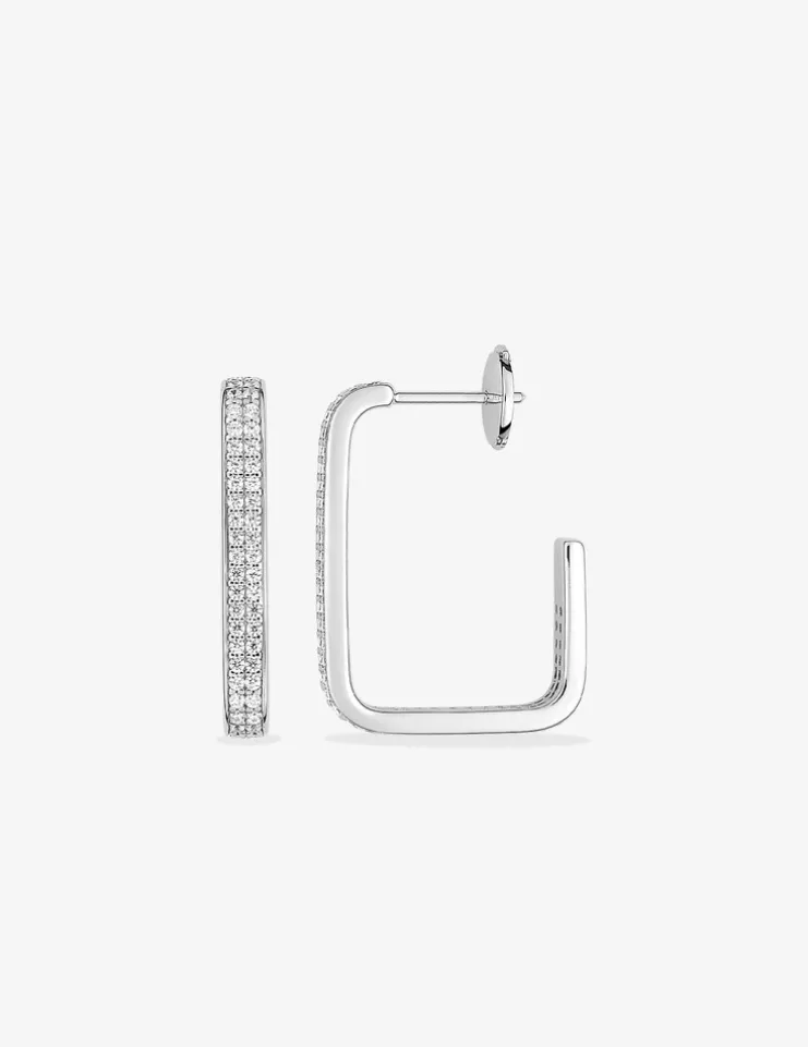 Boucles d'oreilles créoles rectangulaires en argent 925 ‰ rhodié, oxydes de zirconium SO OR