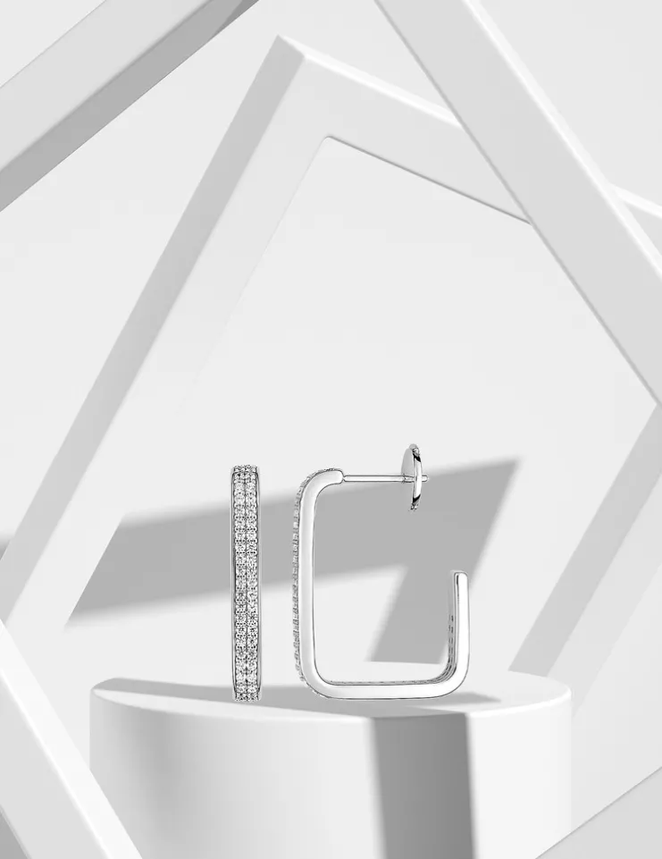 Boucles d’oreilles créoles rectangulaires en argent 925 ‰ rhodié, entièrement ornées d’oxydes de zirconium blancs pour un éclat incomparable. Avec un poids total de 4,50 g, ces bijoux offrent à la fois élégance et confort, parfaits pour ajouter une touche de classe à votre tenue.