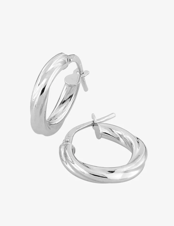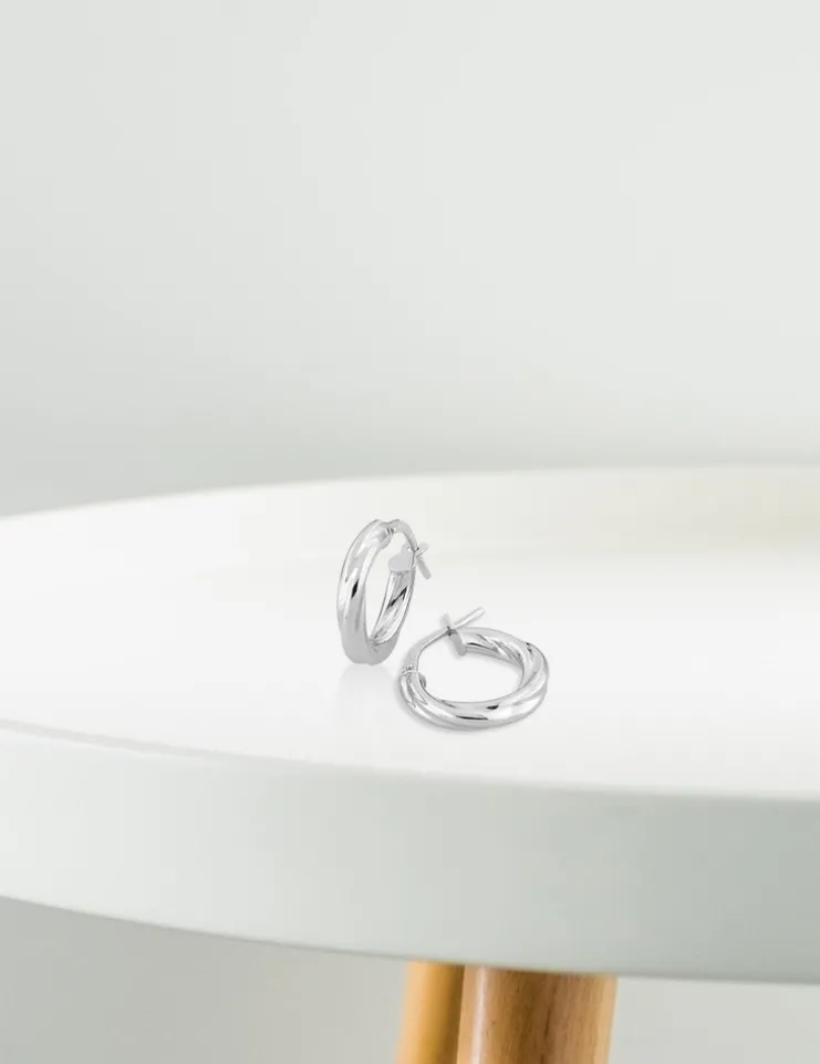 Boucles d'oreilles créoles torsadées en or blanc 375 ‰ SO OR