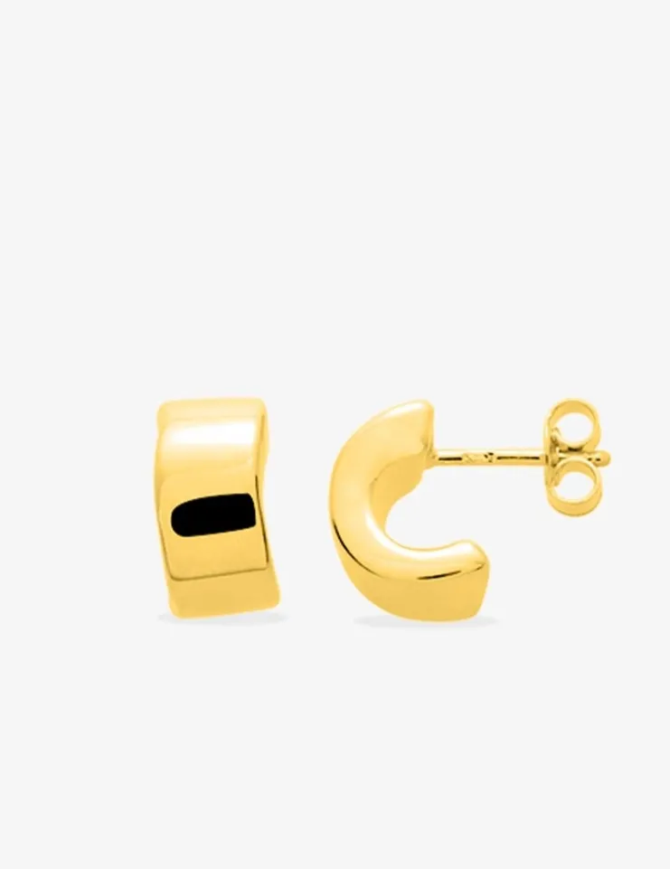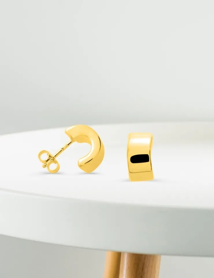 Boucles d’oreilles électroformées en or jaune 750 ‰ (18 carats). Demi-créoles effet volume, brillante et lisse. Elles sont équipées d’un fermoir poussette belge et ont un poids théorique d’or de 1,75 g.
